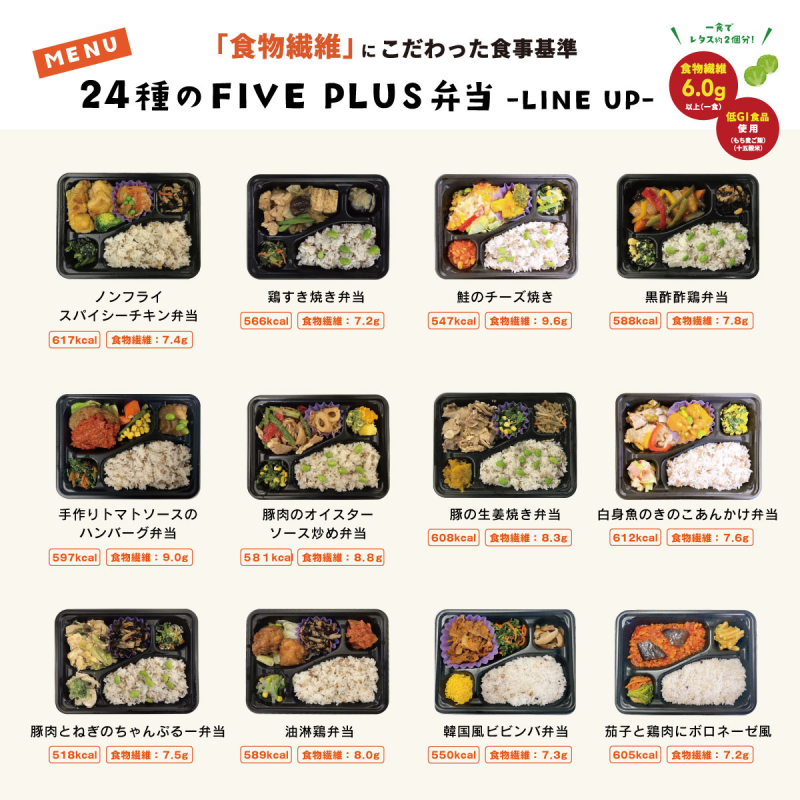 現役臨床医監修のファイブプラス冷凍弁当。 食物繊維にこだわり、お弁当ひとつでレタス2個分の食物繊維6.0g以上が取れます。さらにもち麦ご飯など「低GI食品」を使用しています。 また管理栄養士が栄養価を調整し、厚生労働省が策定する「日本人の食事摂取基準2020年版」に準拠!理想のPFCバランスを実現しました。 【ファイブプラス弁当の魅了】 ①医師が監修しているので栄養価が豊富。なのに満足なボリューム! ②理想のPFCバランス!(P=タンパク質・F=糖質・C=炭水化物) ③食物繊維量は6.0g以上、低GI食品のもち麦ごはん付き ④高くなりがちな食塩相当量を3.0g以下に調整! ⑤冷凍だからチンするだけで、いつでも食べられる!